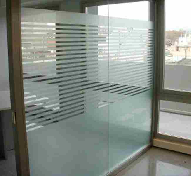 Imagen en las paredes o en el mismo esmerilado de los vidrios brindando un ambiente unificado.